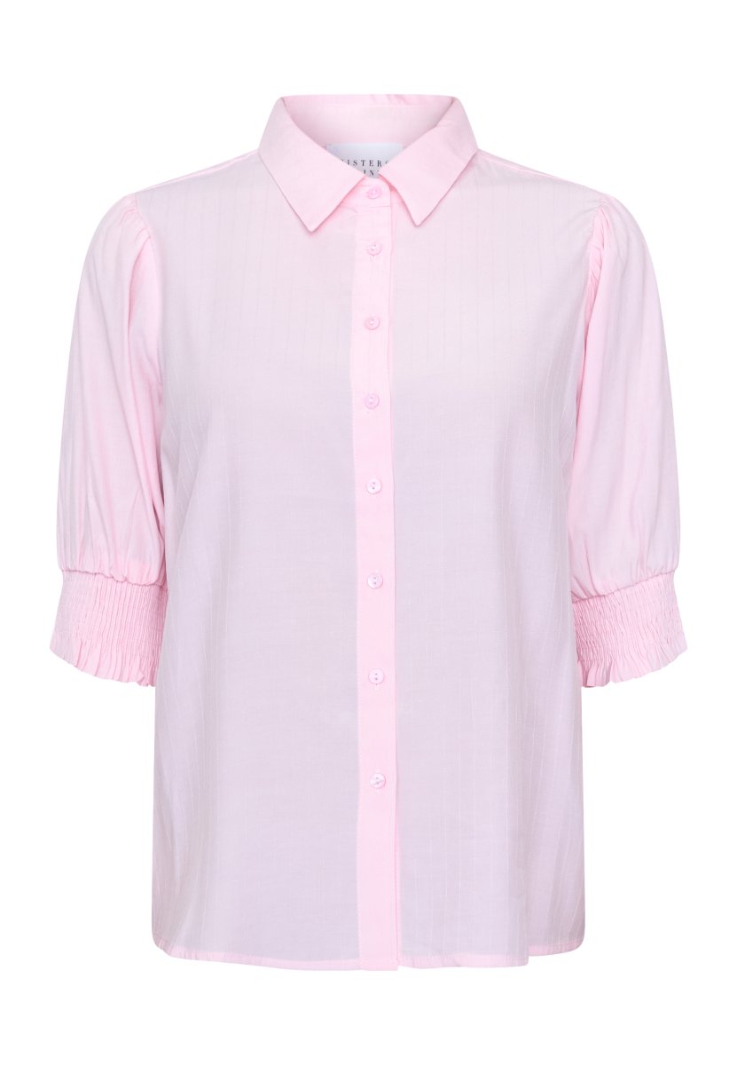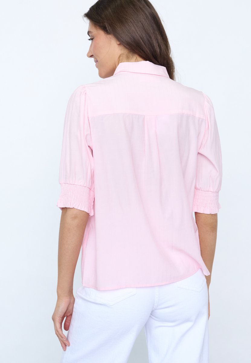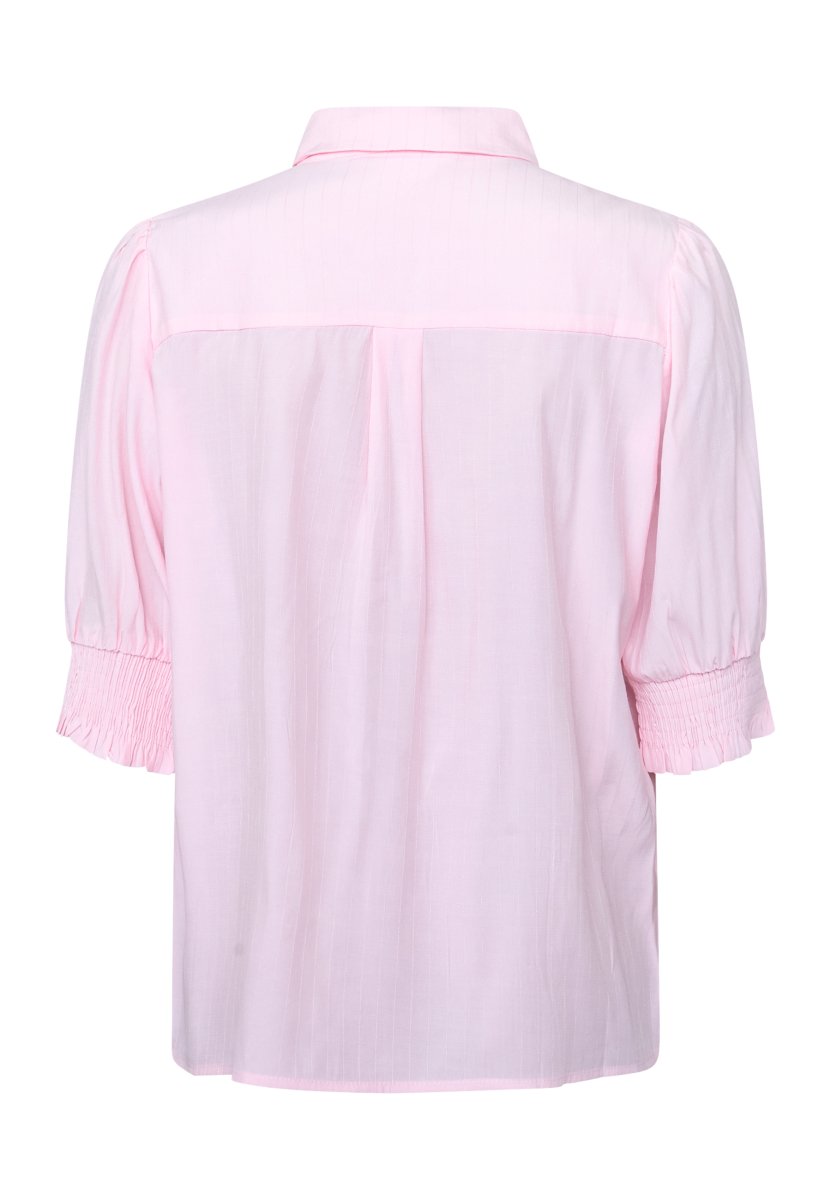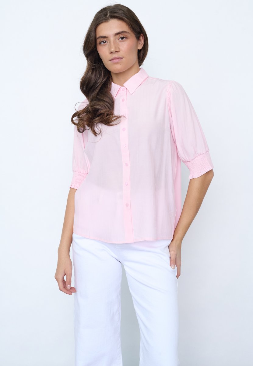 Isola är en lätt skjorta med korta, lätt puffiga ärmar som avslutas med en smal resårkant. Skjortan har en klassisk krage och knäppning framtill.