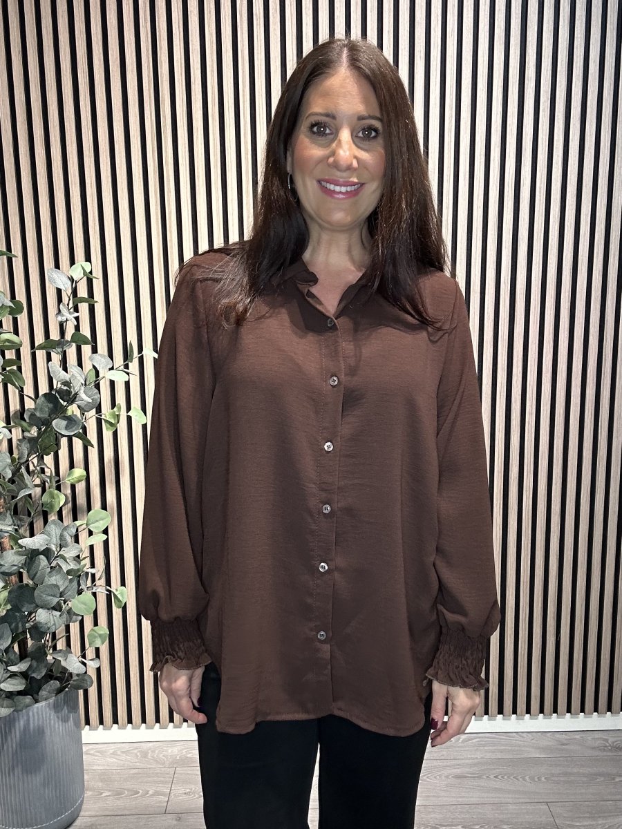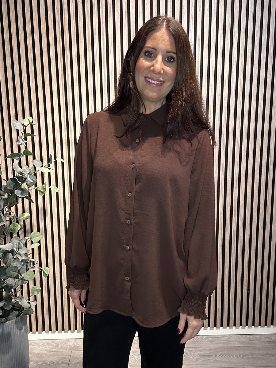 Blusen har en fin smock i ärmslut.