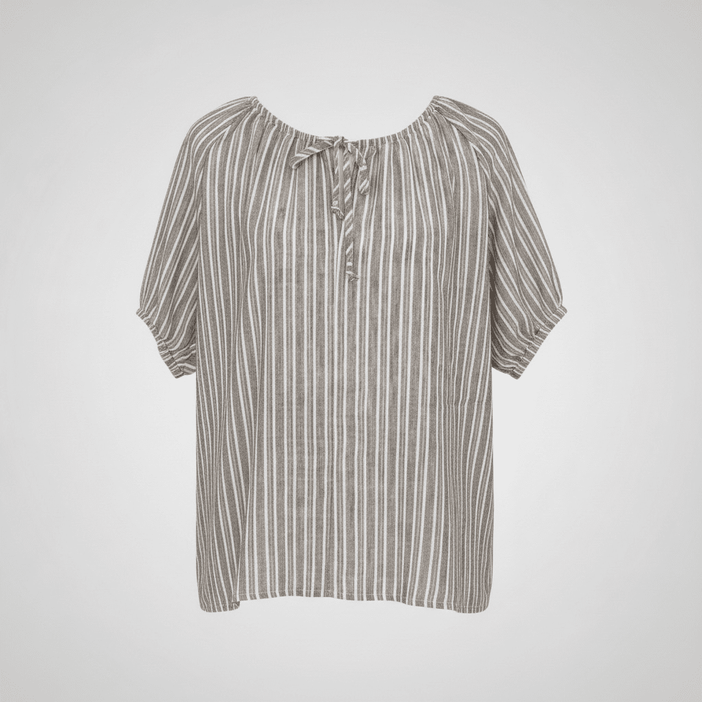 Mary - Randig Blus med knyt i halsen - Brun / Vit