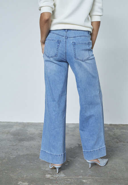Feja är ett par beskurna, vida jeans i ett lätt denim-material med hög midja och diskreta framfickor. De har en ren, bred nederkant för en modern look. Kombinera dessa snygga jeans med en av våra fina blusar eller varför inte en stickad tröja.
