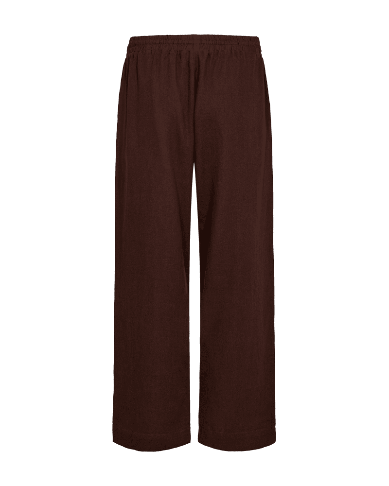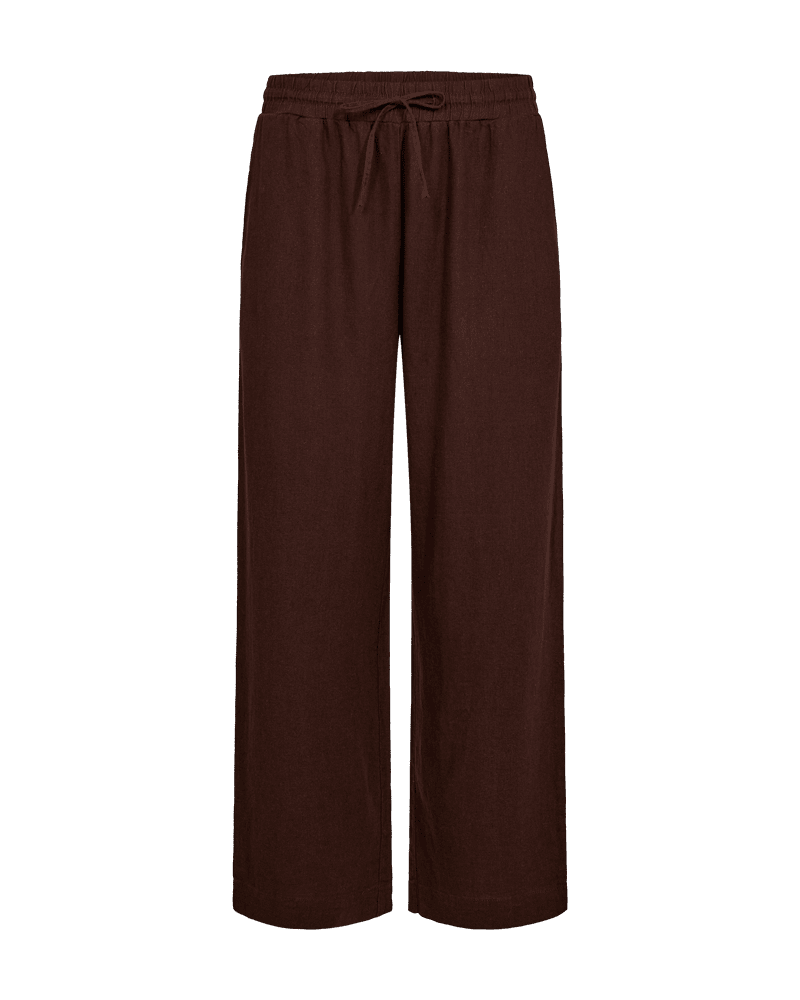 Ankellånga byxor från Freequent i ett lätt linnematerial. Byxorna har en enkel silhuett med resår i midjan med knytband, hög midja, sidfickor och en elegant, avslappnad passform.