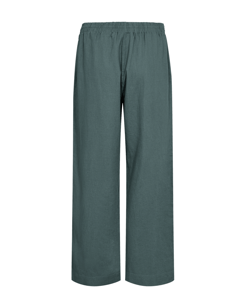 Ankellånga byxor från Freequent i ett lätt linnematerial. Byxorna har en enkel silhuett med resår i midjan med knytband, hög midja, sidfickor och en elegant, avslappnad passform.