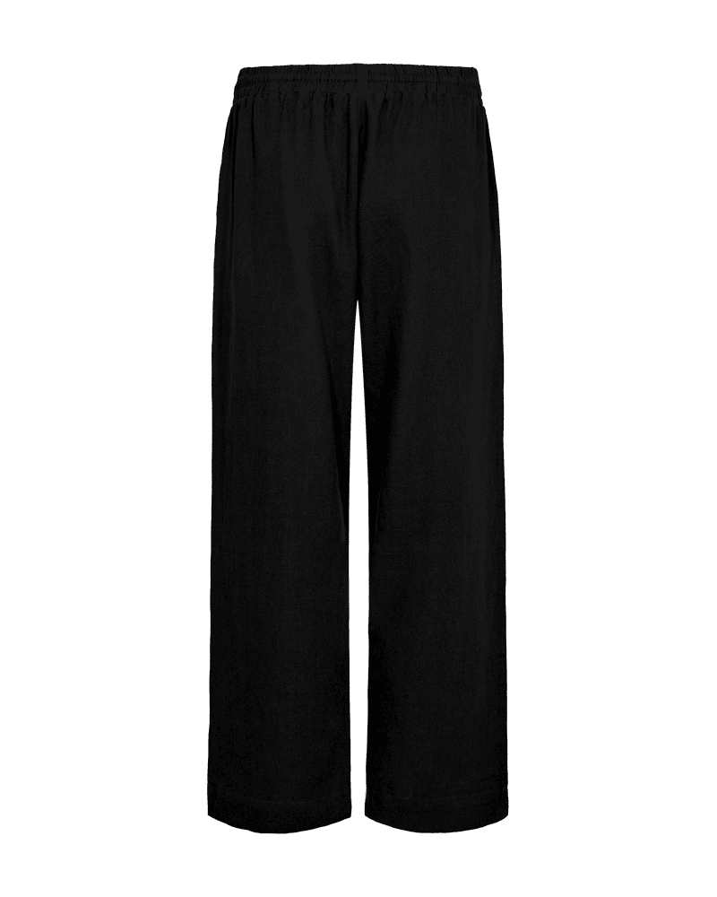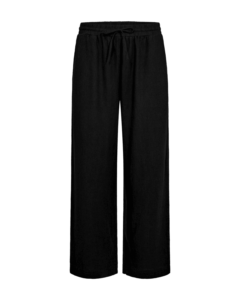 Ankellånga byxor från Freequent i ett lätt linnematerial. Byxorna har en enkel silhuett med resår i midjan med knytband, hög midja, sidfickor och en elegant, avslappnad passform.