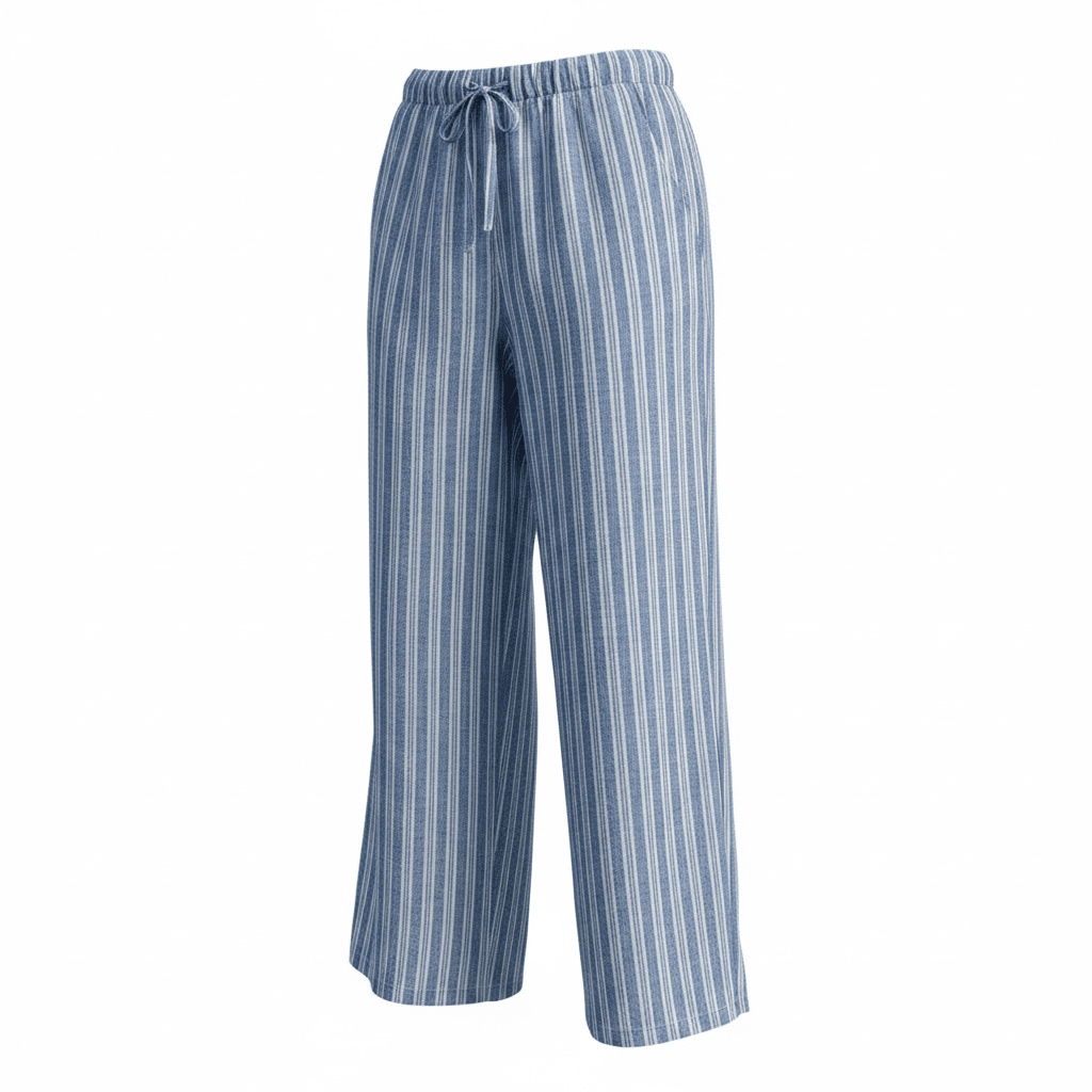 Ett stilrent och bekvämt set i ett tidlöst randigt mönster. Setet består av en luftig topp och matchande byxor i en mjuk blåvit färgkombination.