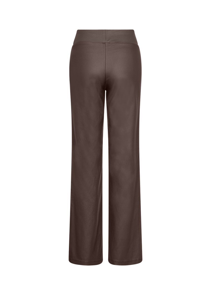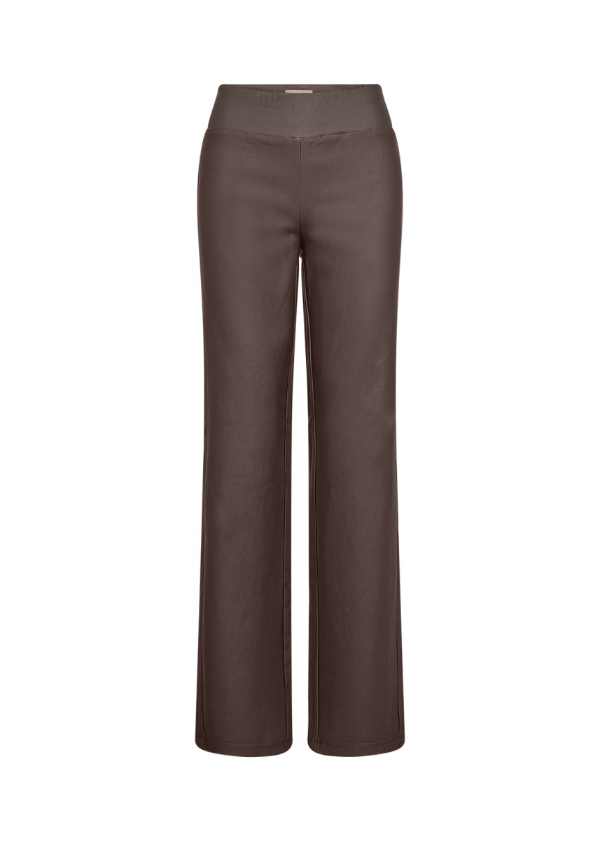Dessa eleganta byxor har en slät, läderliknande textur och en smickrande silhuett med vida ben. Resår i midjan.
