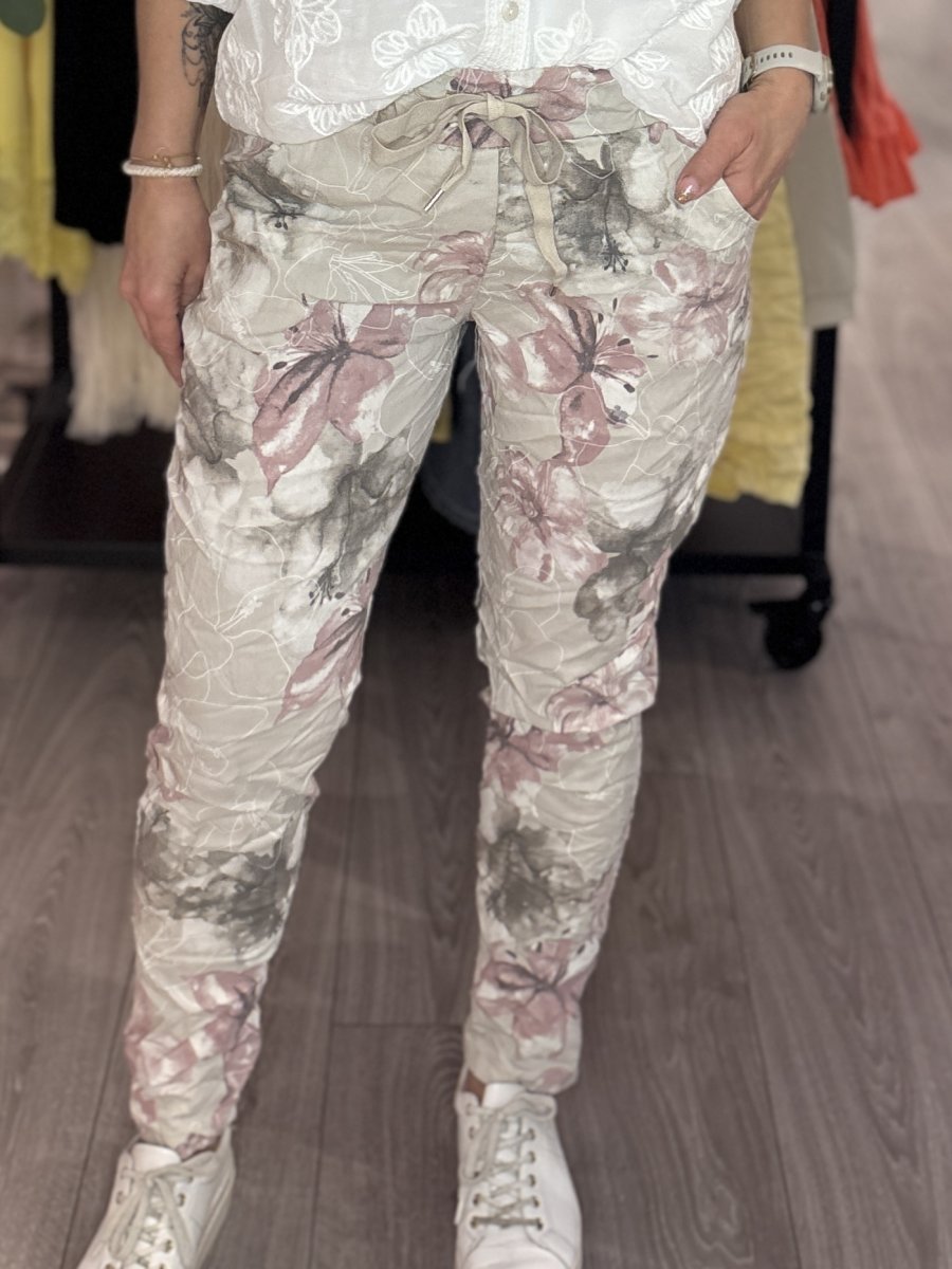 Magiskt stretchiga byxor med bekväm resår i midjan som ger en perfekt passform. Det vackra mönstret ger en stilfull och feminin look, samtidigt som materialet gör dem otroligt sköna att bära. Onesize – passar de flesta.