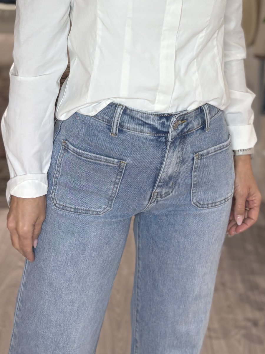 Snygga, vida jeans med små fickor fram.