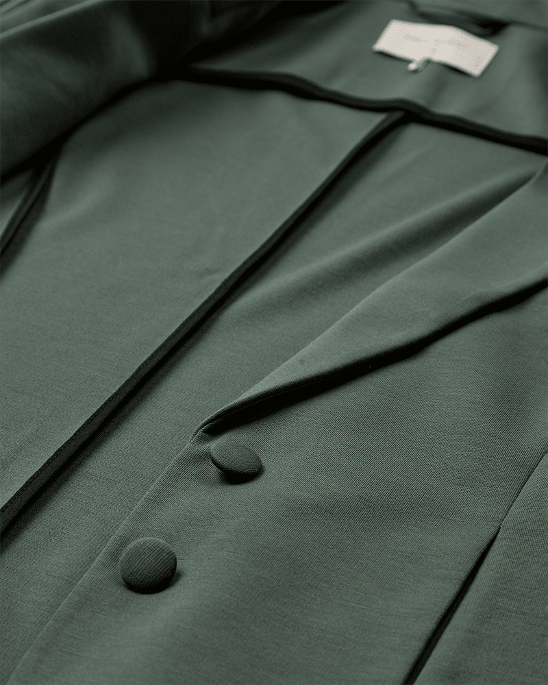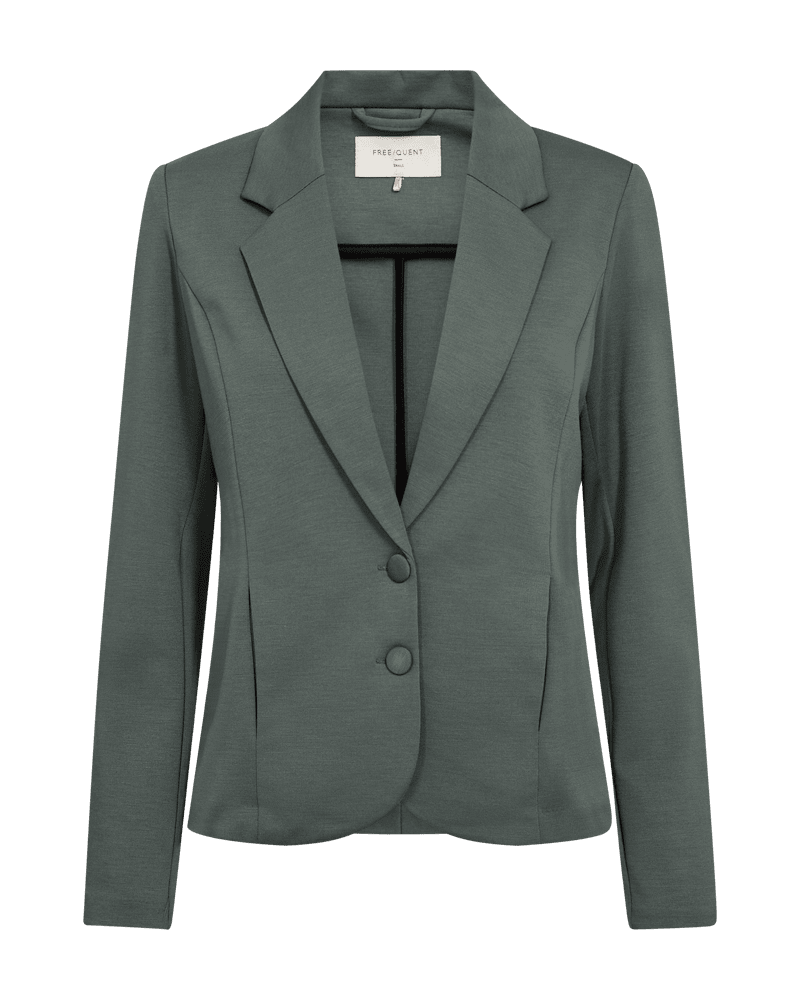 Kavaj i ett mjukt och stretchigt material. Kavajen har en enkel silhuett med tygklädda knappar framtill och långa ärmar, V-ringning med slag, subtila sidfickor och en elegant figurnära passform.