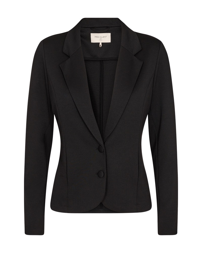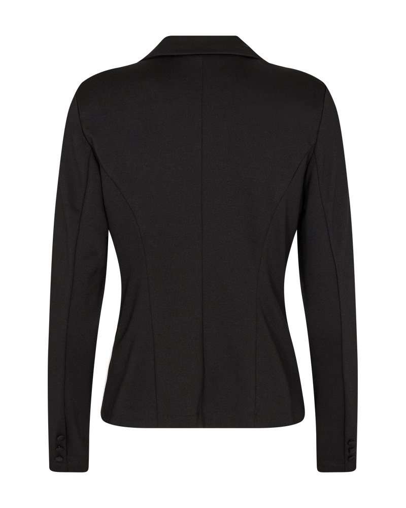 Kavaj i ett mjukt och stretchigt material. Kavajen har en enkel silhuett med tygklädda knappar framtill och långa ärmar, V-ringning med slag, subtila sidfickor och en elegant figurnära passform.