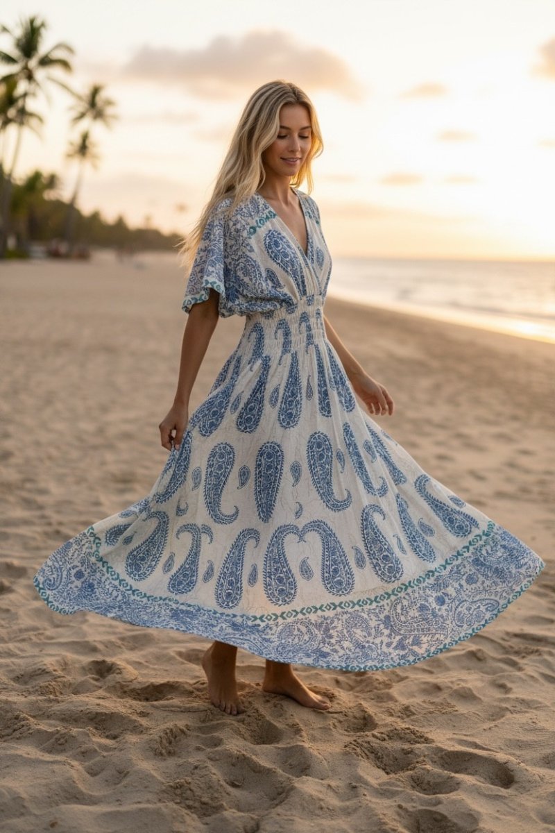 Den perfekta sommarklänningen för en feminin och avslappnad stil. Klänningen har en smickrande passform med elastisk smock i midjan som formar sig efter kroppen och ger en bekväm känsla hela dagen.