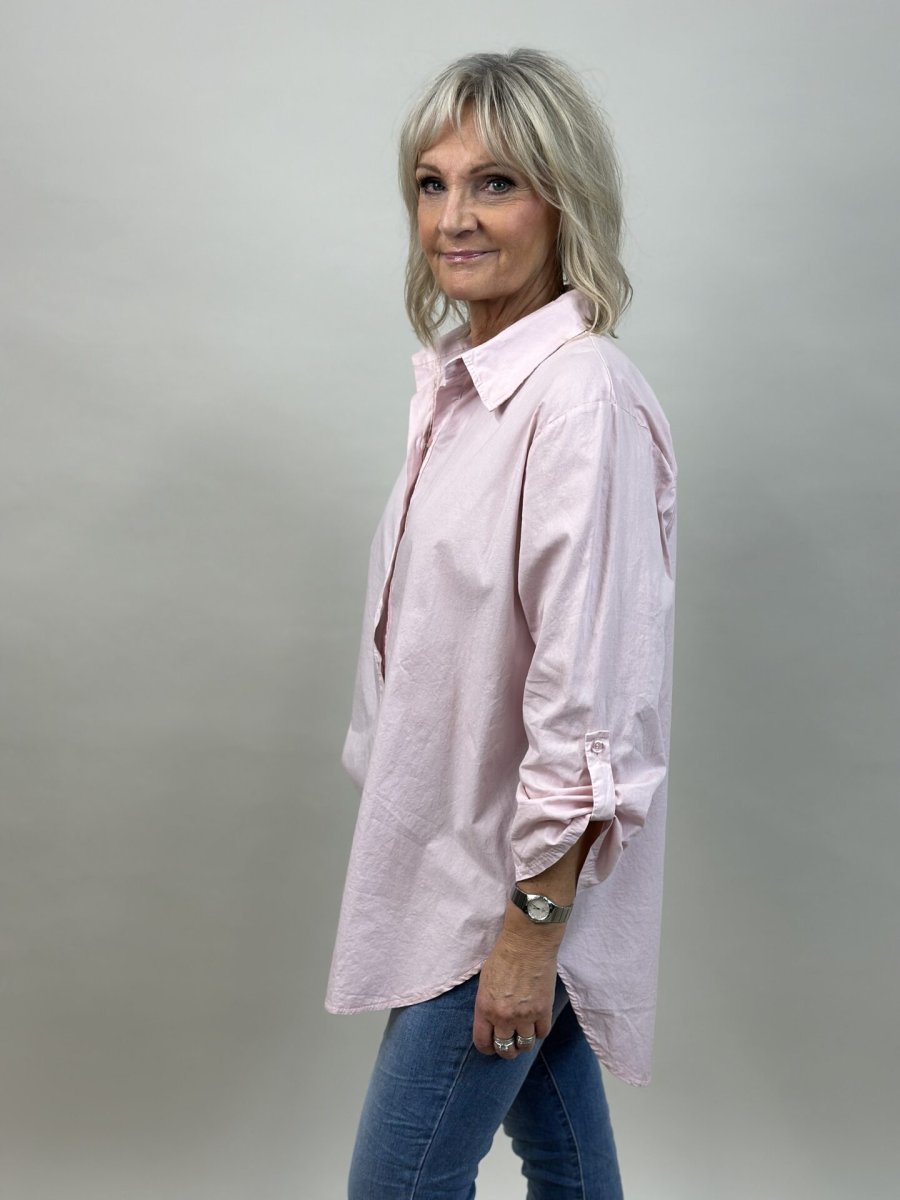 Bomullsskjorta med knappar hela vägen, lång ärm med knappslå.