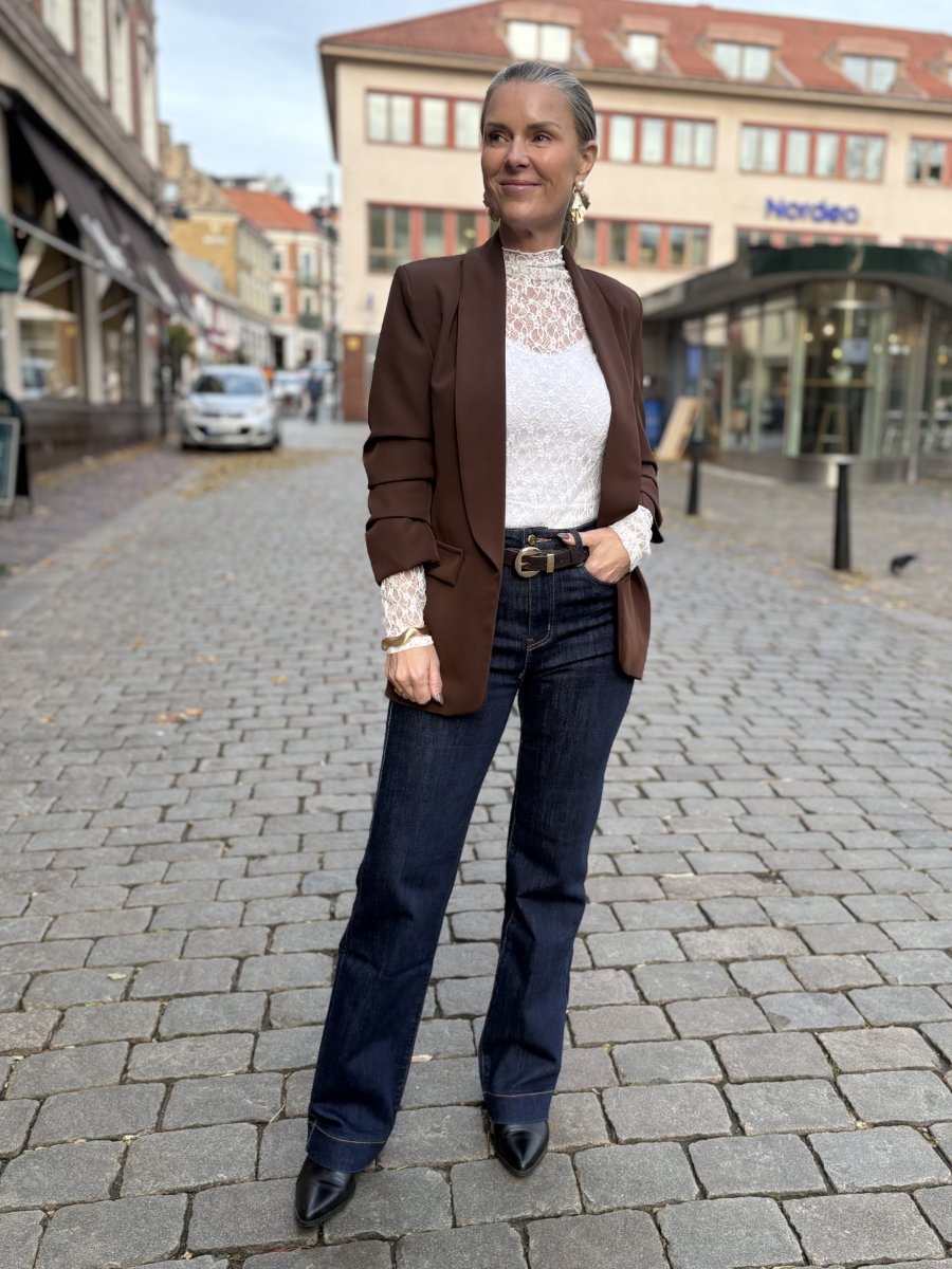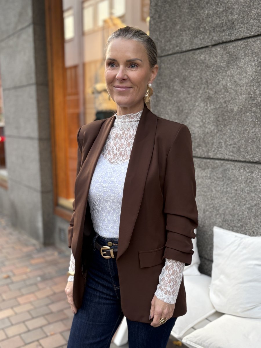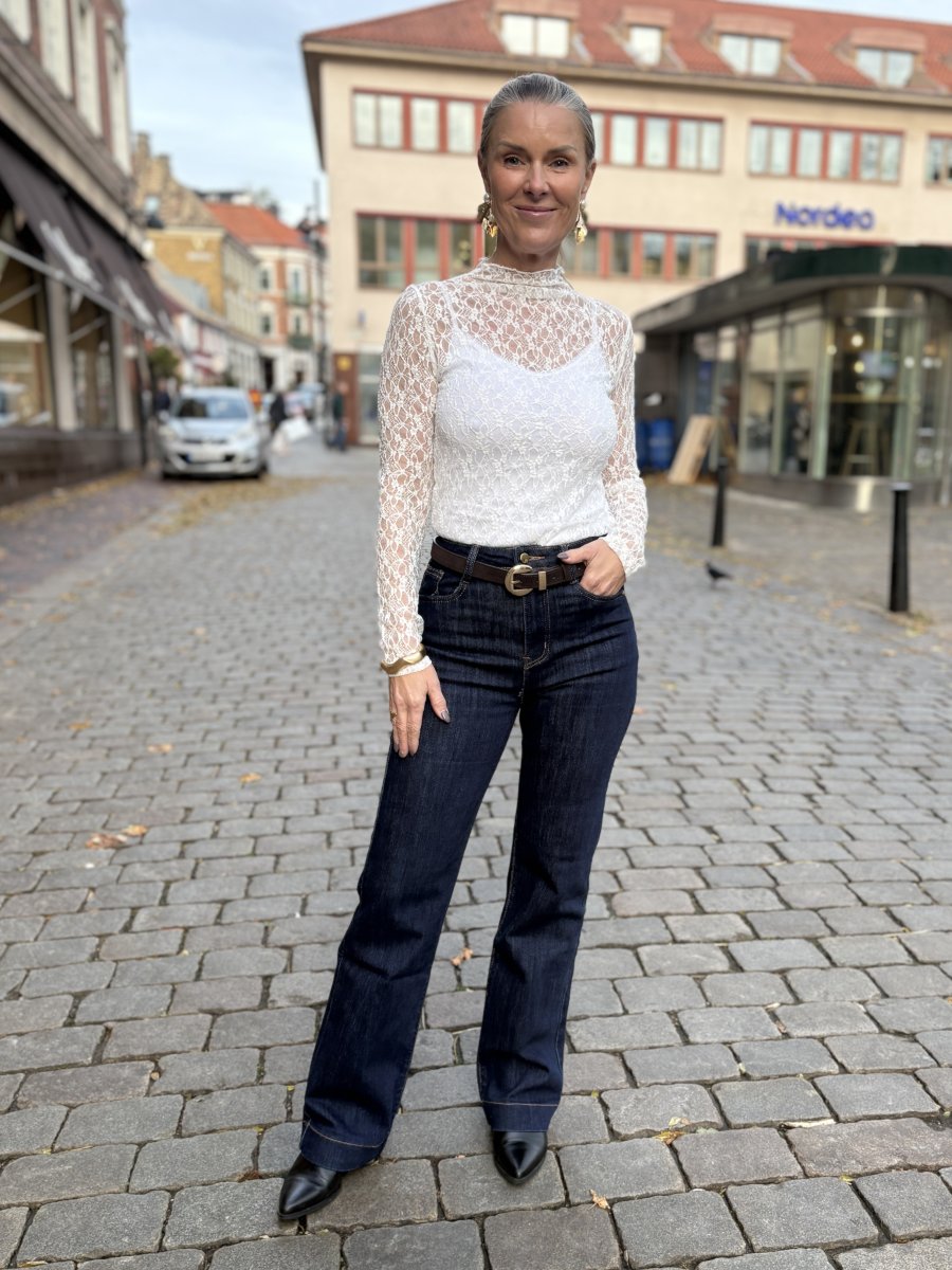 En vacker spetstopp som är snygg att bära bara som den är eller använda under en kavaj eller stickad tröja. Fint när spetsen träder fram i ärmslut under en kavaj.