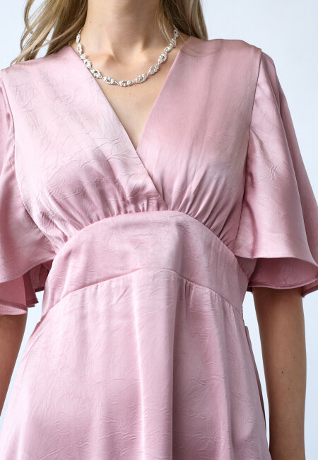 Vacker klänning med v-ringning och fladdermusärm. Resår i ryggen. Perfekt till sommarens alla festligheter!