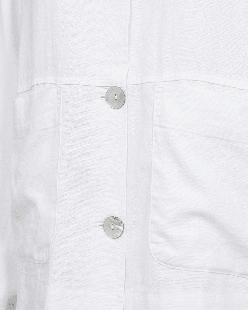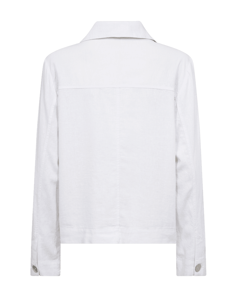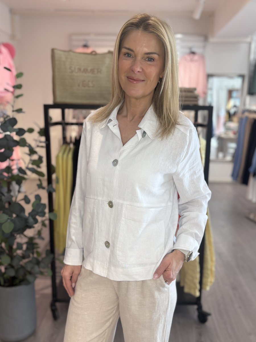 Jacka från Freequent i linnematerial. Jackan har en enkel silhuett med långa ärmar, krage, knappknäppning och stora fickor fram.